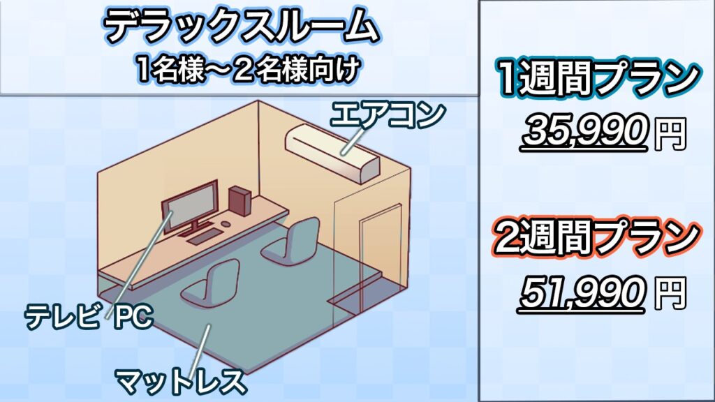 ※2名様利用時は1週間プラン45,990円 2週間プラン61,990円 となります