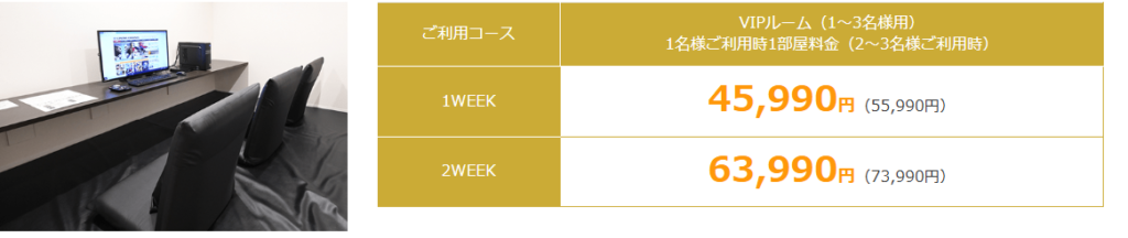 3名様までご利用可能、当店最大の広さのVIPのお部屋も長期プランをご用意しております。